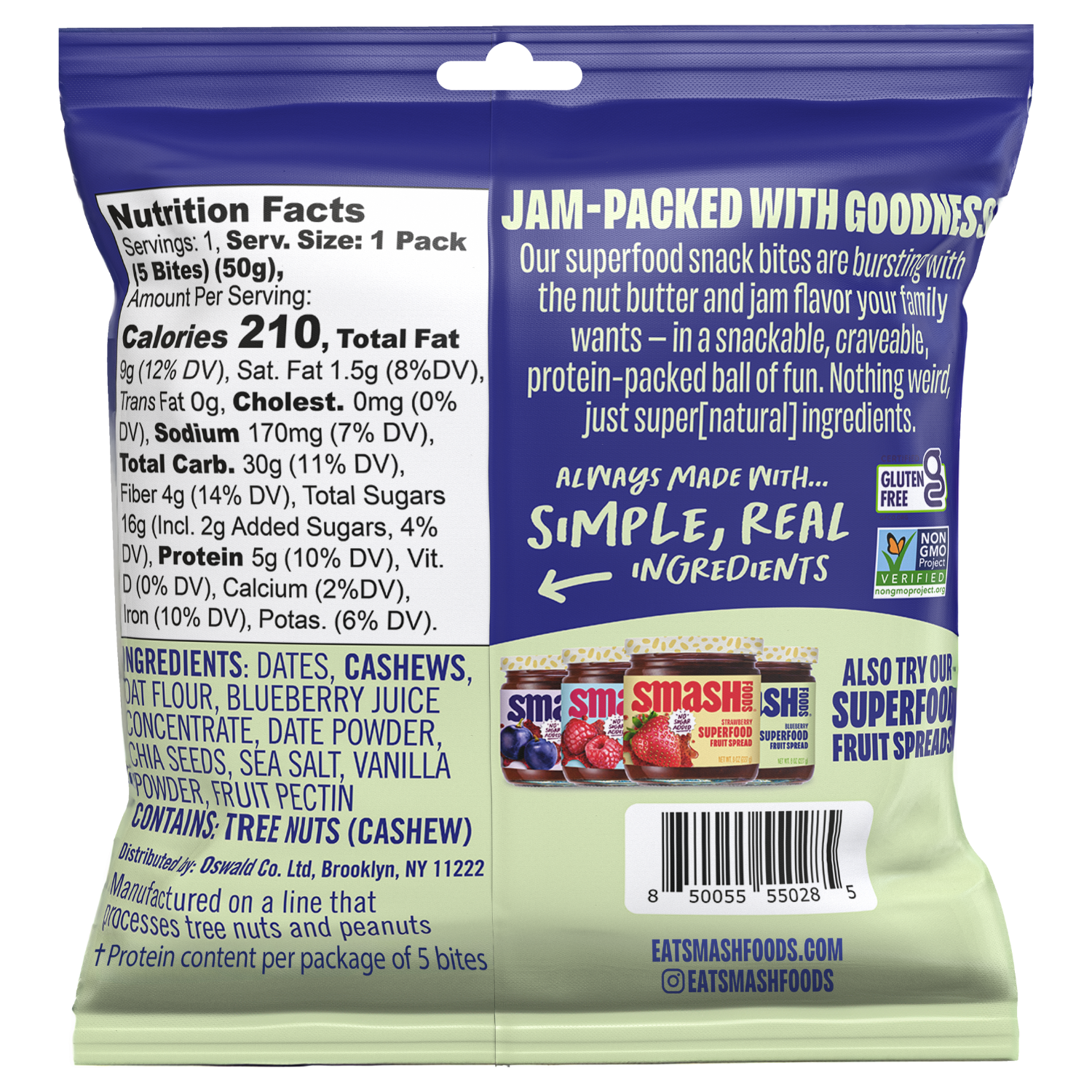 Our superfood bites are bursting with the Nut Butter + Jam flavor your family wants – in a snackable, craveable, protein-packed ball of fun. Nothing weird, just super[natural] ingredients.